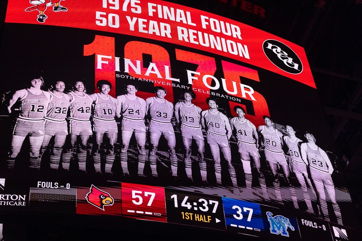 A special 50 year reunion for one of the best University of Louisville teams in the program’s history was celebrated Saturday at the KFC Yum! Center. One of Coach Denny Crum’s favorite teams, the 1974-75 edition, which posted a 28-4 won-lost record and finished third in the NCAA Basketball Tournament.