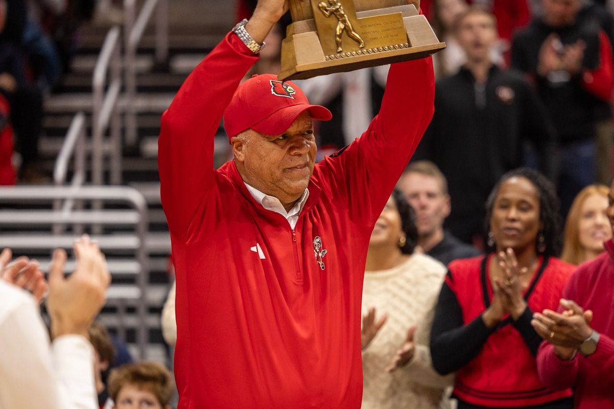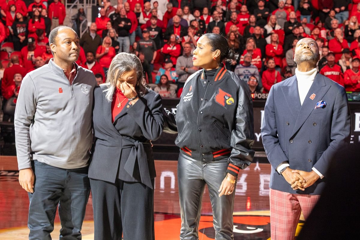 His widow Doris was present for the reunion, which also doubled as a ceremony to retire Bridgeman’s No. 10 jersey, which will hang over the Denny Crum Court. Also present were his sons Justin and Ryan and his daughter Eden Sklenar. Several other members were in attendance from that 1974-75 team were present as well, including assistant coach Bill Olsen, Bill Bunton, Stanley Buntin, Allen Murphy, Phillip Bond, Danny Brown, Terry Howard, and Rick Wilson.