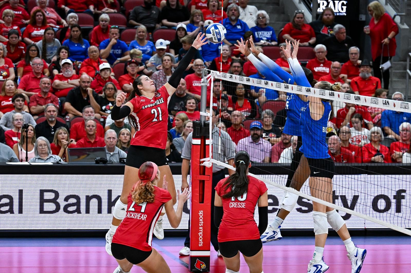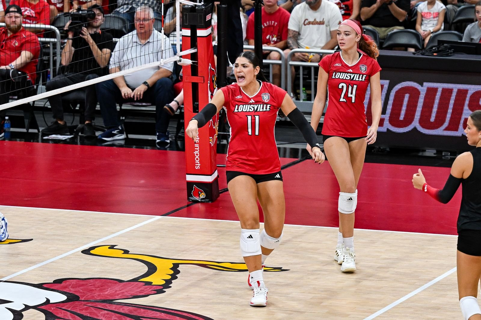 Some occasional flashes of positivity for UofL. Hannah Sherman with a career-high 11 blocks, adding nine kills and one dig. Outside hitter Payton Peterson with her fourth double-double of the season with 14 kills and 11 digs.
