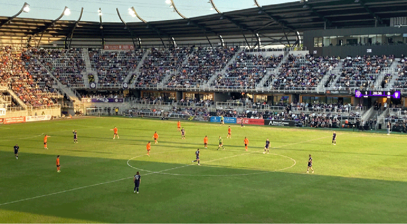 But the bigger point is that this is an enthusiastic crowd of approximately 9,000 people this night, tightly focused on every play, every pass, ever miscue, every wide right or wide left. They love the game, they love their team. Lou City will defeat the Orange 3-0 in an almost flawless performance. At last check, the local lads were 8-1 this season. The Racing Louisville women are 2-6-2 on the season.