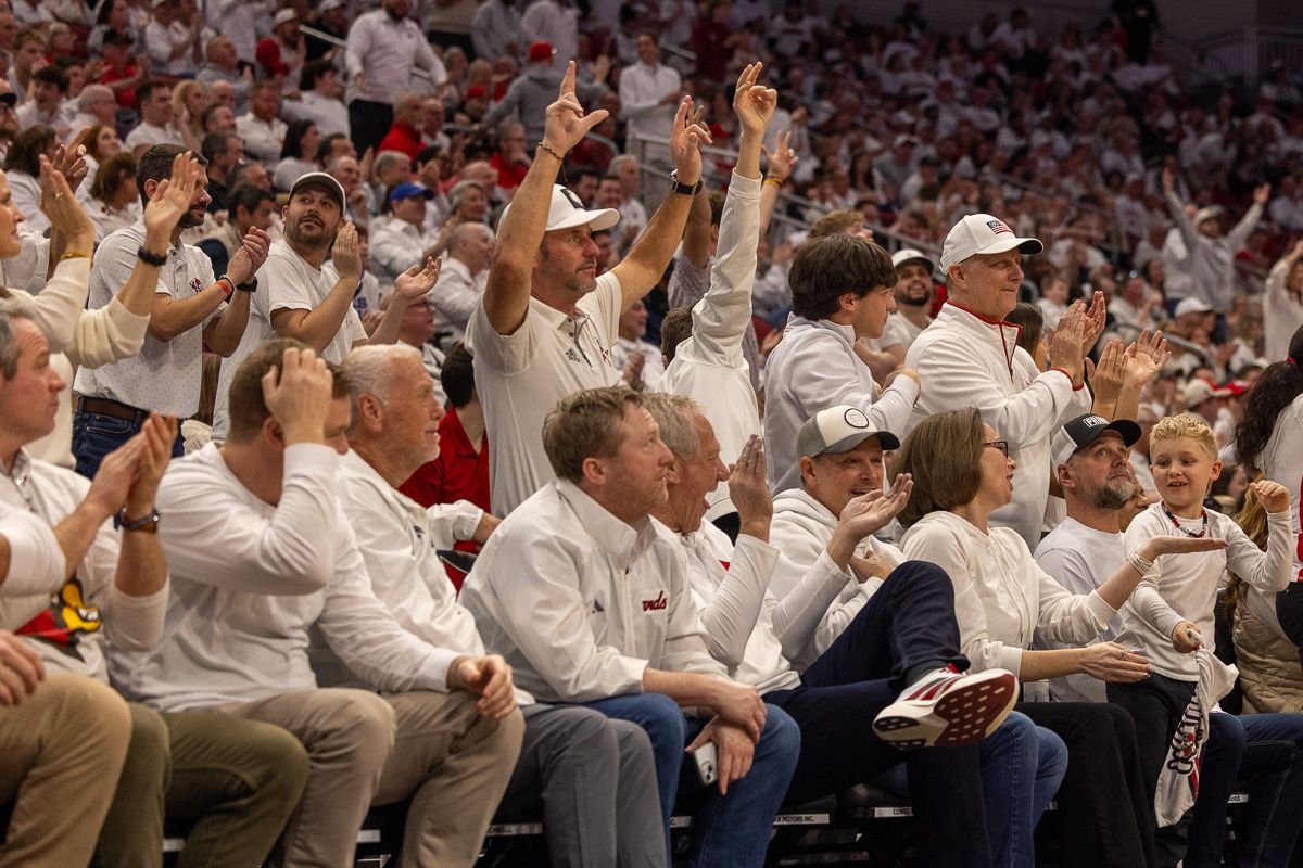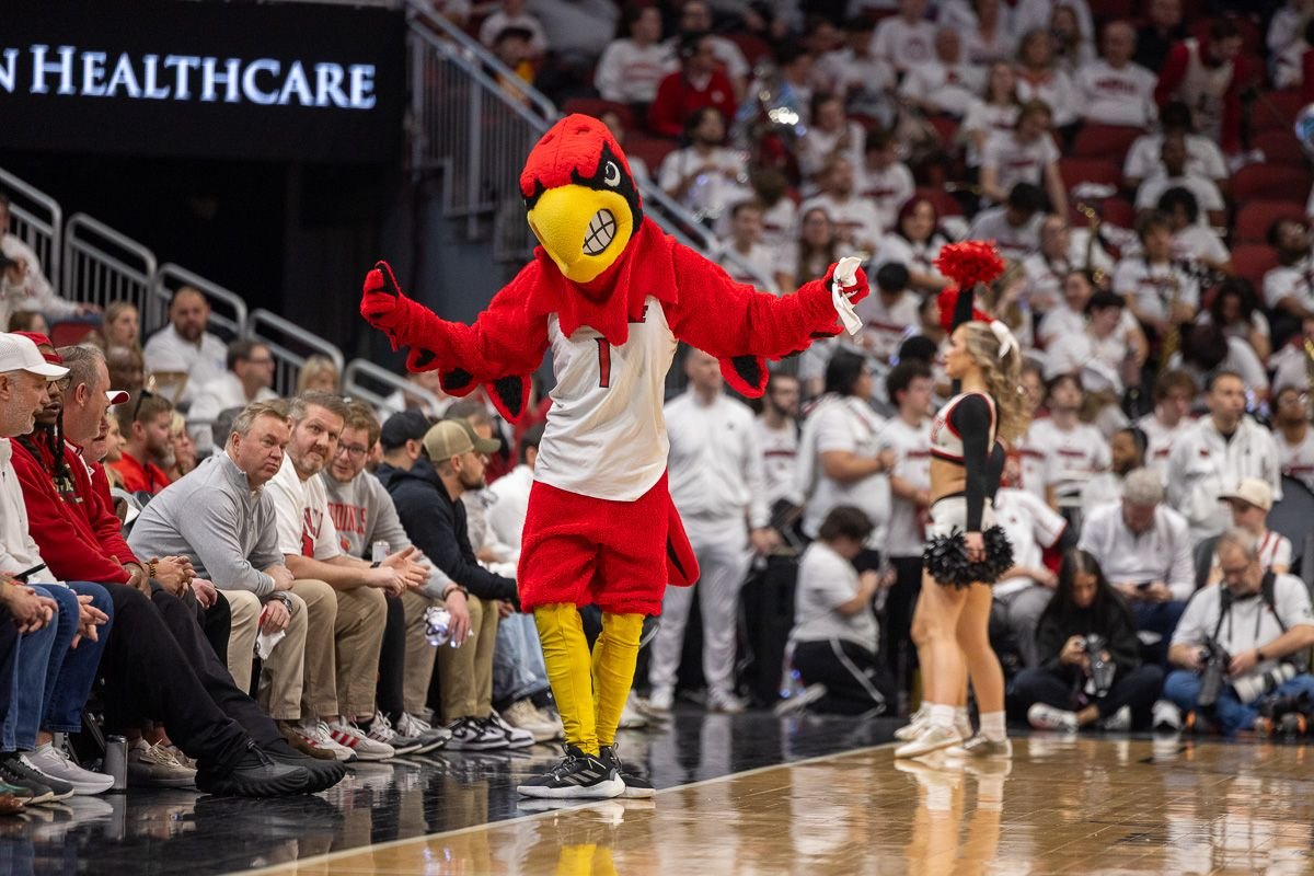 Everybody is happy when the Cardinal Bird is happy at the the KFC Yum! Center (Mike DeZarn photo).