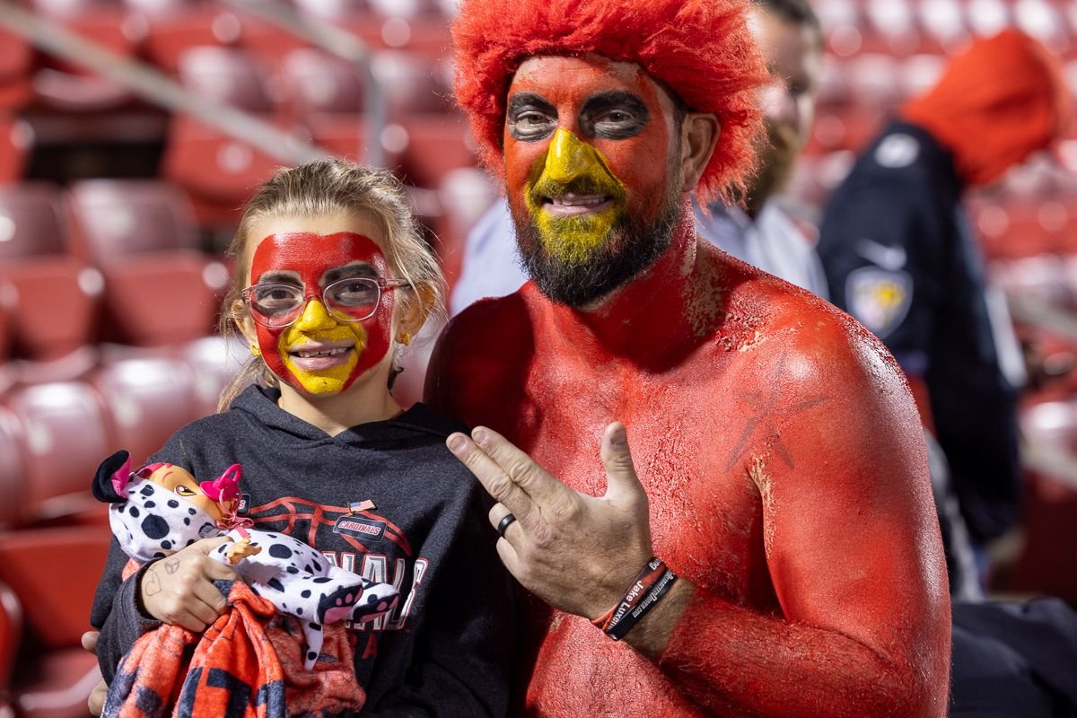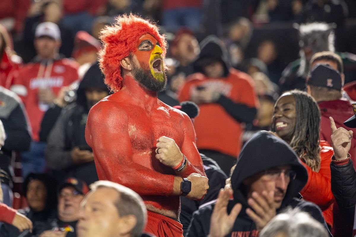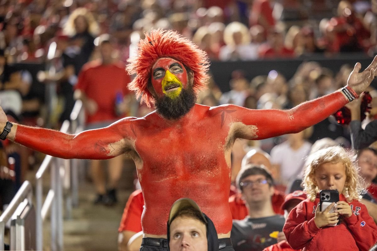 But there are few UofL fans as dedicated as Gary Budd, who paints much of his body in red with a yellow beak on his face. He’s at every football and basketball game, as well as many baseball, volleyball and other sports. There to cheer nonstop for The Ville, getting fellow fans involved.
